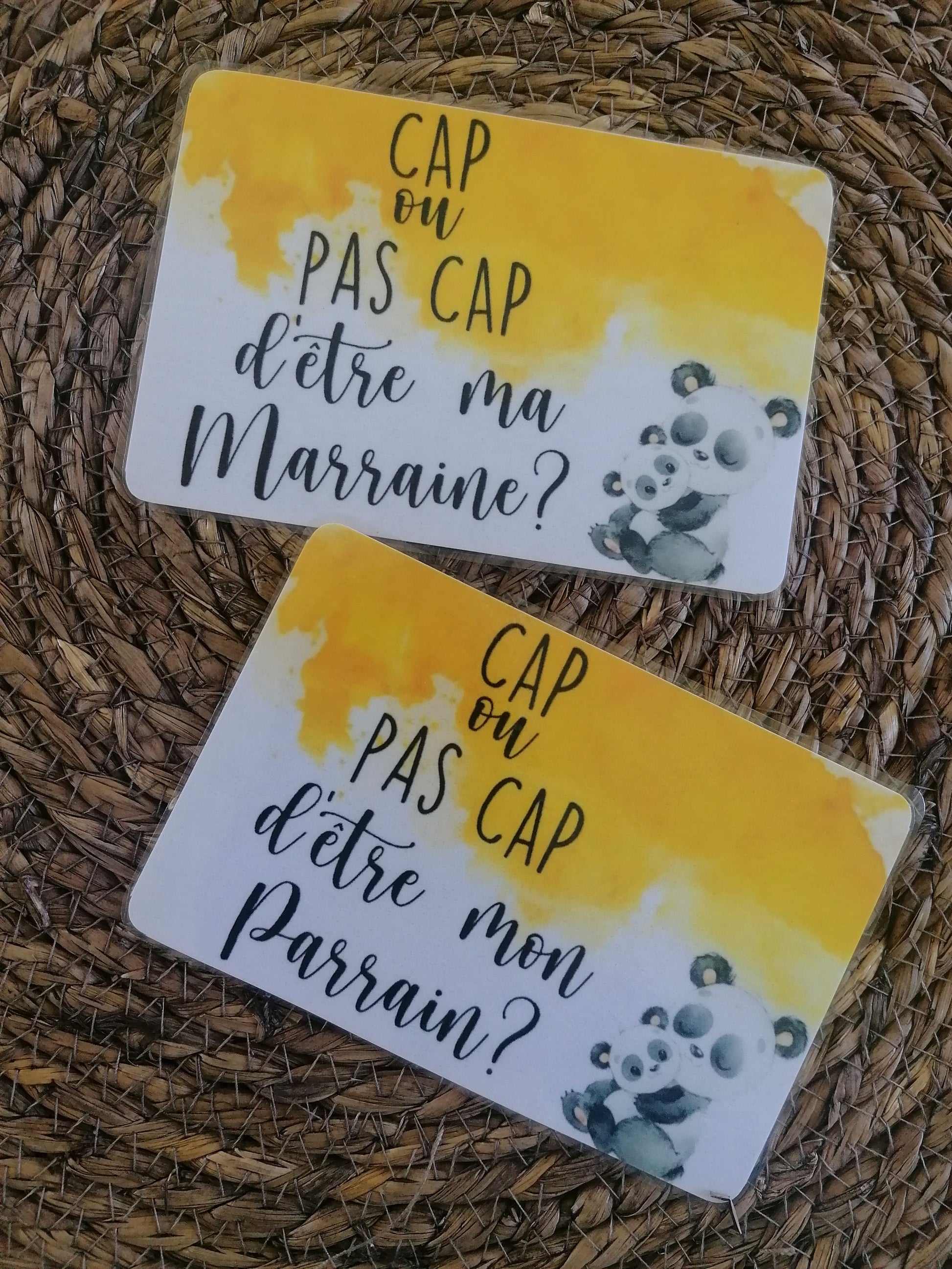 Lot de 2 cartes “Cap ou pas Cap” – Demande Parrain & Marraine – Carte originale bébé/enfant