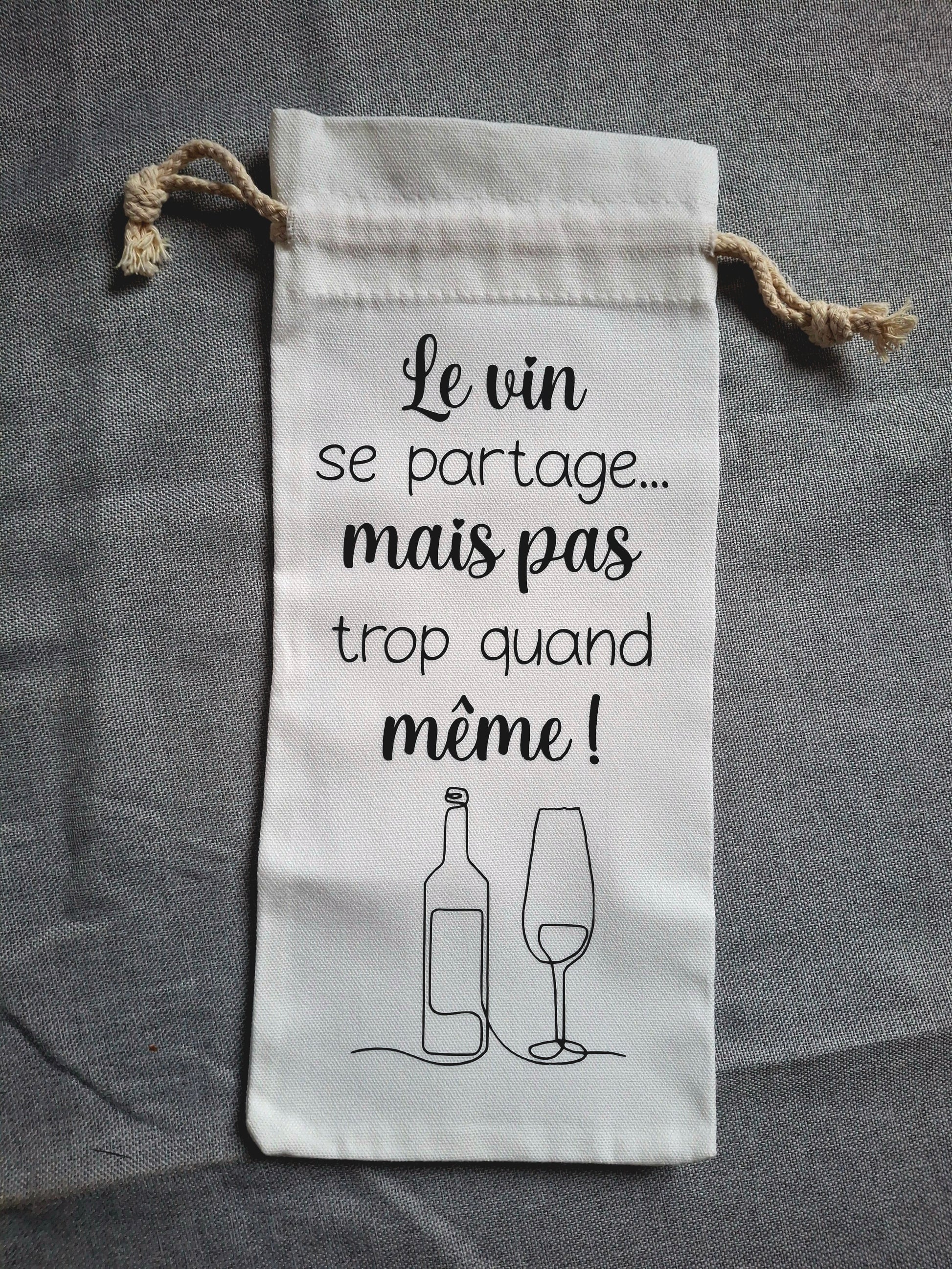 Sac à bouteille humour “Le vin se partage… mais pas trop quand même” – cadeau apéro entre amis | Ma Bulle Créative